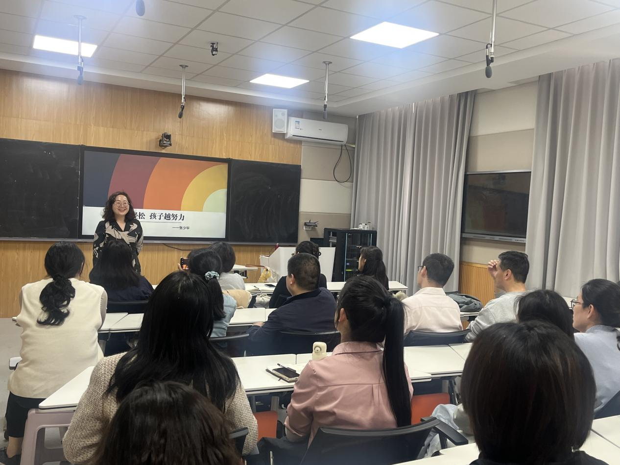 本次活动邀请中国高级家庭教育指导师、智慧父母研修班带导老师张少华主讲。讲座一改传统报告模式,通过情景模拟、互动交流等生动形式,引导在场教职工深入思考父母在教育中的关键角色,帮助大家识别并跳出常见的育儿误区。张少华指出,良好的家庭教育应着重激发孩子的内在动力,而非单纯依靠督促与管控。只有父母放下焦虑,运用科学的教育方法,才能真正实现“父母越轻松,孩子越努力”的育儿状态