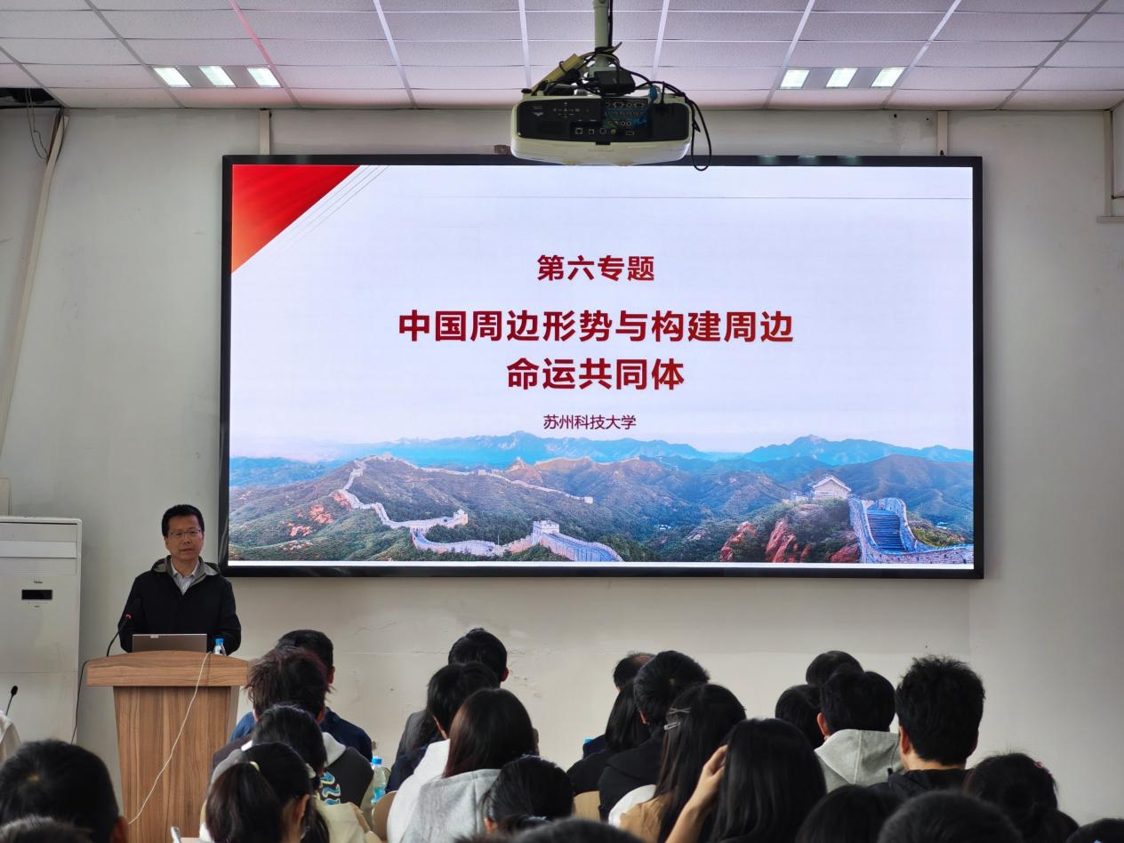 11月7日上午,校党委常委、副校长何湘江以《中国周边形势与构建周边命运共同体》为主题,为数学科学学院和物理科学与技术学院学生讲授“形势与政策”课。