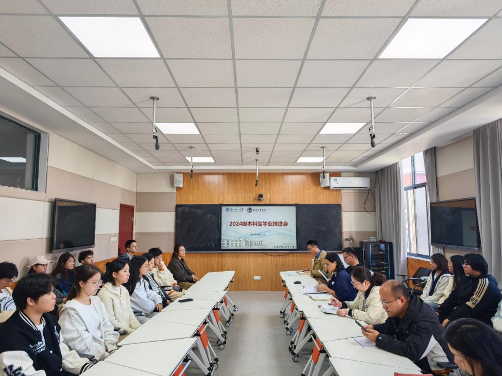 11月13日下午,数学科学学院在教2-308召开2024级本科生学业推进会。学院党委副书记胡世怡、2024级本科生班主任、辅导员及各班主要班干部共同参加此次会议。会议由胡世怡主持。