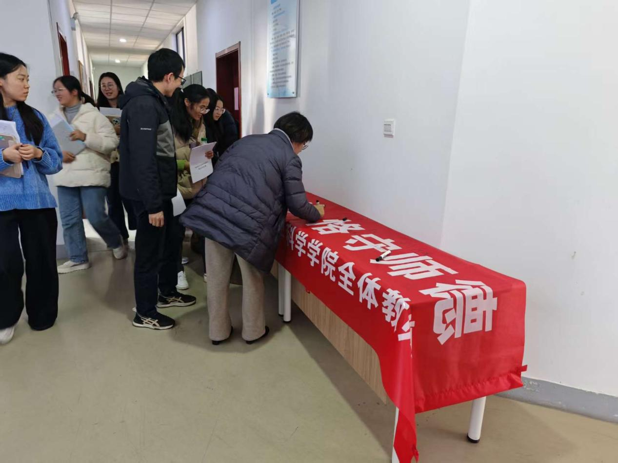 警示教育环节中,学院组织师生学习典型案例通报、集中观看警示教育片,以案为鉴、警钟长鸣,切实增强拒腐防变的自觉性与坚定性。活动期间,全体教师郑重签署《数学科学学院廉洁从教承诺书》,并在“我承诺:廉洁从教,恪守师德”主题横幅上签名,表达坚守师德、廉洁育人的信心与决心。