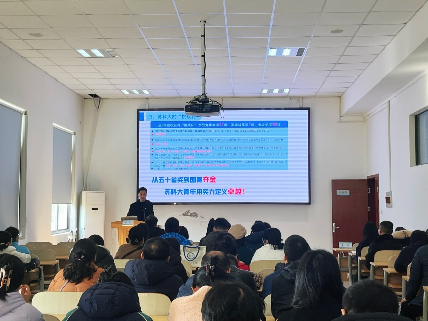 会议总结竞赛成果,强化激励机制。学院副院长宋传静以《以赛促教、以赛促学——数学科学学院学科竞赛工作总结与展望》为题,系统汇报了学院2025年度学科竞赛成果。2025年学院在各类学科竞赛中表现突出,在全国大学生数学建模竞赛中获国家级二等奖1项;在全国大学生统计建模大赛中获国家级三等奖1项;在美国大学生数学建模竞赛中获一等奖2项;在中国大学生计算机设计大赛中获国家级一等奖1项;获省部级奖项若干。宋传静详细解读了学校学科竞赛奖励办法,特别说明了学科竞赛对师生成长的促进作用,鼓励师生积极参与学科竞赛。
