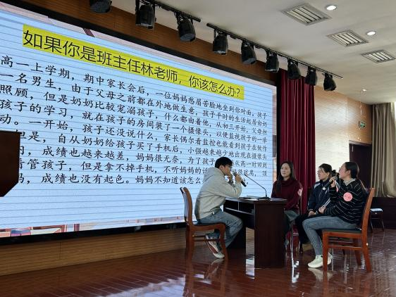 专题讲座环节,须海萍老师结合一线经验,围绕班主任沟通原则、技巧等内容,通过案例剖析带来兼具理论与实践价值的分享。实战研讨环节,工作室老师模拟师生矛盾、同学摩擦等真实场景,师范生化身“班主任”登台处置,点评老师从问题定位、沟通适配性等维度细致指导,传授实战技巧,践行“实战赋能、协同共育”初衷。