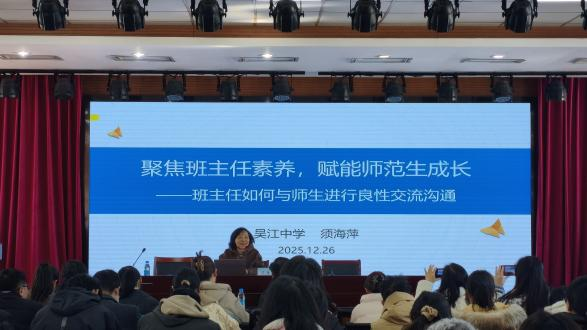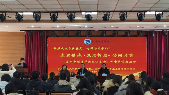为深化校地协同育人机制,提升未来教育工作者班级管理与实战应对能力,12月26日,苏州科技大学数学科学学院联合苏州市须海萍班主任名师工作室,在石湖校区举办“真实情境・见招拆招・协同共育”主题班主任工作实战研讨活动。学院院长黄志刚、副院长孙桂荣,吴江中学校长韩保席,须海萍班主任名师工作室成员及学院师范类研究生、本科生共同参与。