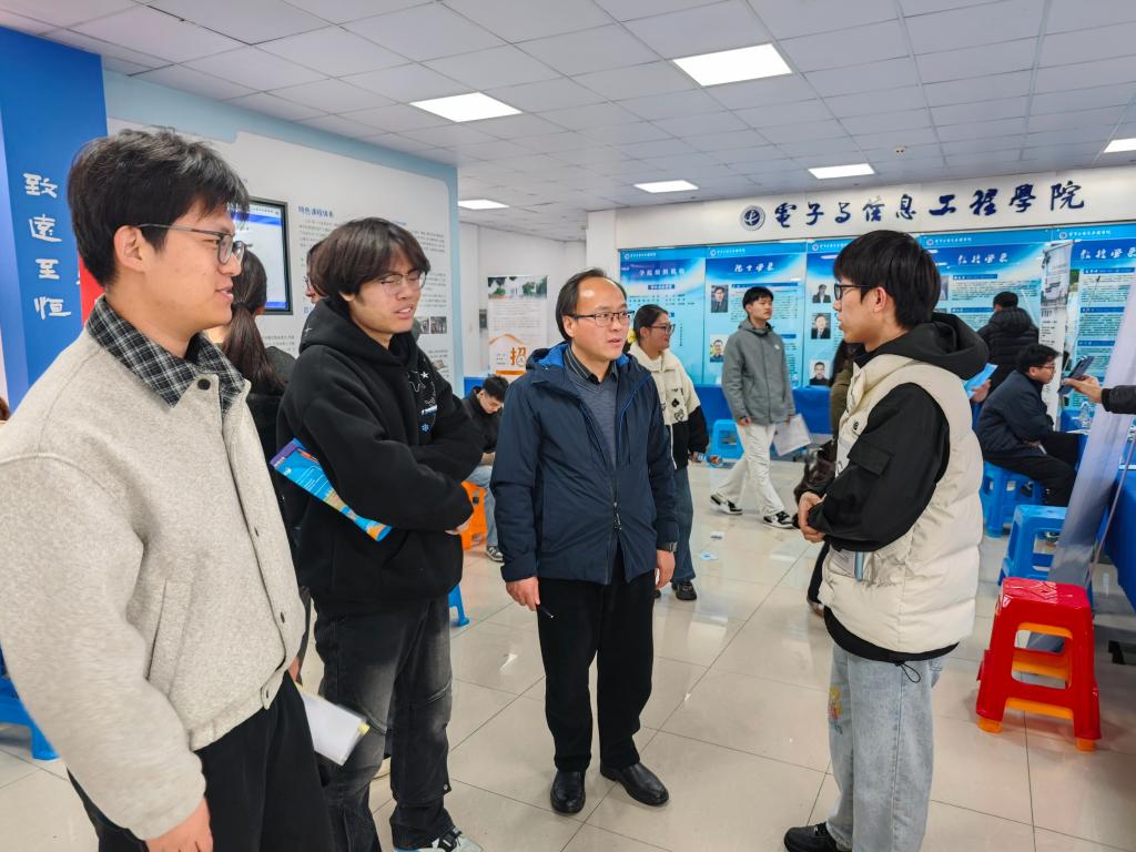 为精准搭建校企对接平台,全力促进2026届毕业生高质量充分就业。3月18日,数学科学学院、电子与信息工程学院、地理科学与测绘工程学院在电子楼一楼大厅,联合举办了2026届毕业生春季专场招聘会。学院党委书记王开永、党委副书记胡世怡和毕业班辅导员来到招聘会现场,与用人单位展开深入交流,指导毕业生求职。