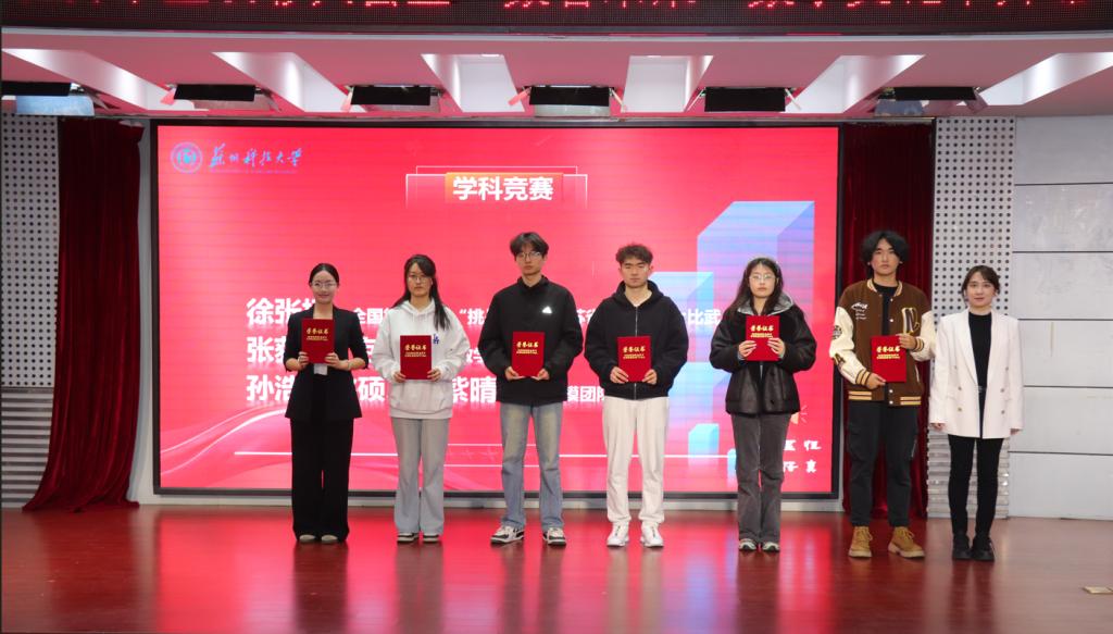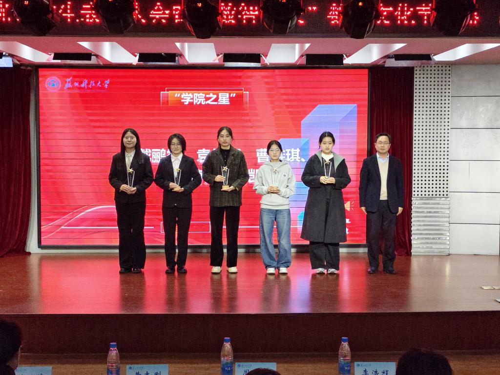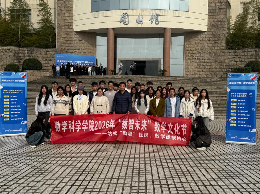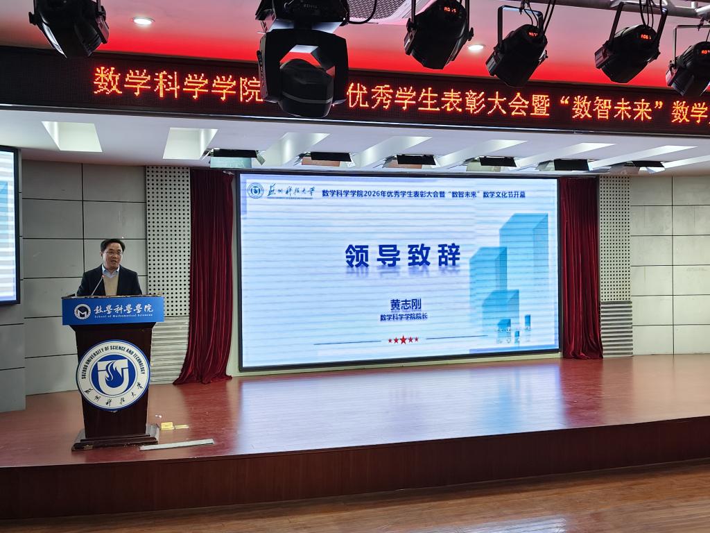 3月25日下午,数学科学学院2026年优秀学生表彰大会暨“数智未来”数学文化节开幕式在天平校区图书馆报告厅举行。校学生工作处副处长陈琰、校团委副书记周思颖、苏州中军视觉技术有限公司负责人李浩程,学院院长黄志刚、党委副书记胡世怡、辅导员及学生代表参加活动。
