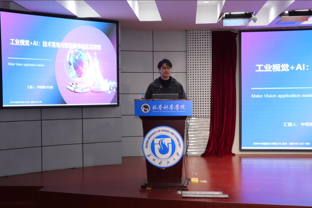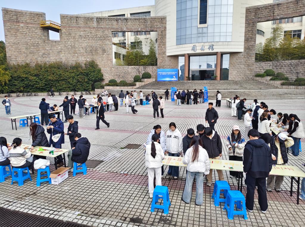 黄志刚为数学文化节致开幕词。他从数学“有用”、“好玩”、“有未来”三个方面展开分享,回顾了学院的发展与办学成果,勉励同学学好专业知识,以数学为工具在人工智能时代探索创新。李浩程结合工业视觉领域实践,介绍了数学在图像处理、神经网络、模型优化、算法分析等方面的技术落地与数智融合应用。开幕式后,同学们在图书馆参与了数学游园会体验活动。