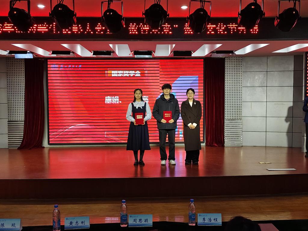 表彰环节中,陈琰向受到表彰的优秀个人与团队表示祝贺,对学院在学生工作与学生成长等方面取得的成绩给予肯定,并对同学们提出夯实基础、跨界融合、勇担使命三点希望。黄志刚、陈琰、周思颖分别为获“学院之星”、国家奖学金、学科竞赛获国家级奖项的优秀学生个人与团队颁奖。学生代表曹雅琪、康娟、徐张扬结合自身经历,分别从笃学明志、博学笃研、竞优笃行方面做经验分享。