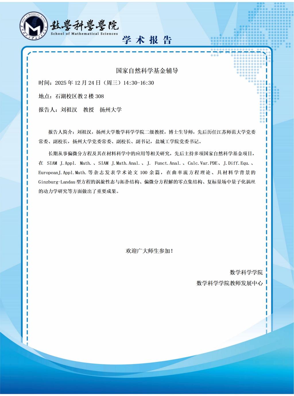 【数苑讲坛】第二十二讲:非线性分析及其应用系列报告