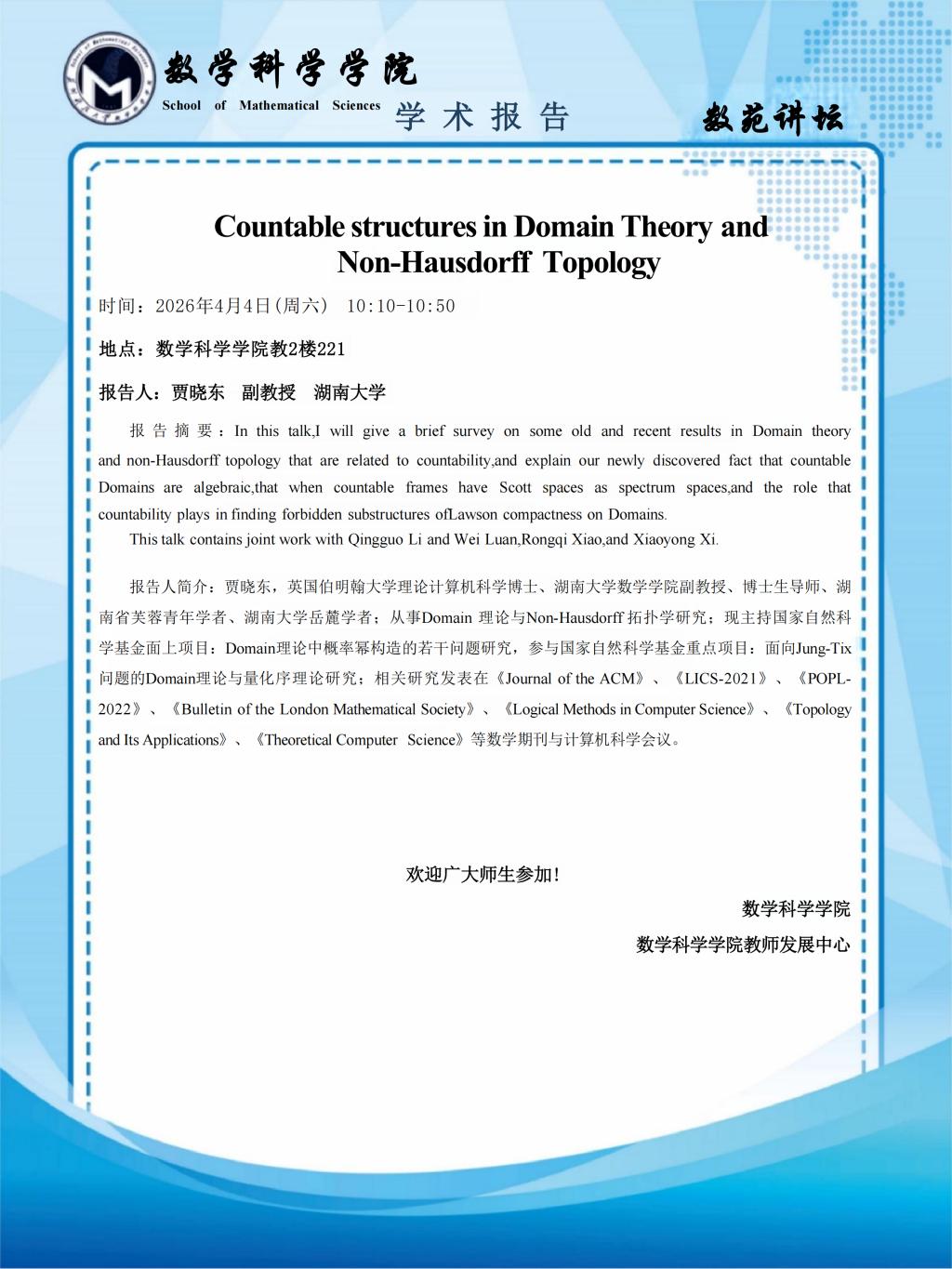地点:数学科学学院教2楼221