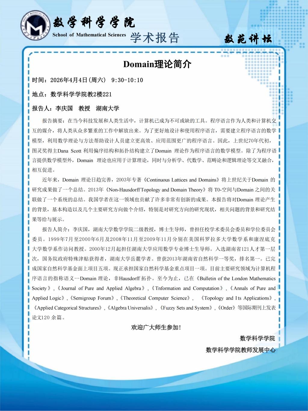 【数苑讲坛】第二十四讲:Domain 理论系列报告