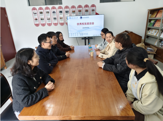 座谈会在教二212会议室举行。胡世怡代表学院对校友们的返校表示热烈欢迎,详细询问了两位校友毕业一年来的工作感悟、职业发展情况,叮嘱他们在工作中脚踏实地、精益求精,同时希望校友们常念母校、常回母校看看,继续关注学院发展。辅导员许顺杰与校友们共同回忆在校期间的点滴趣事,关切了解他们在工作中的困惑与收获,为他们的职业发展提出真诚建议。